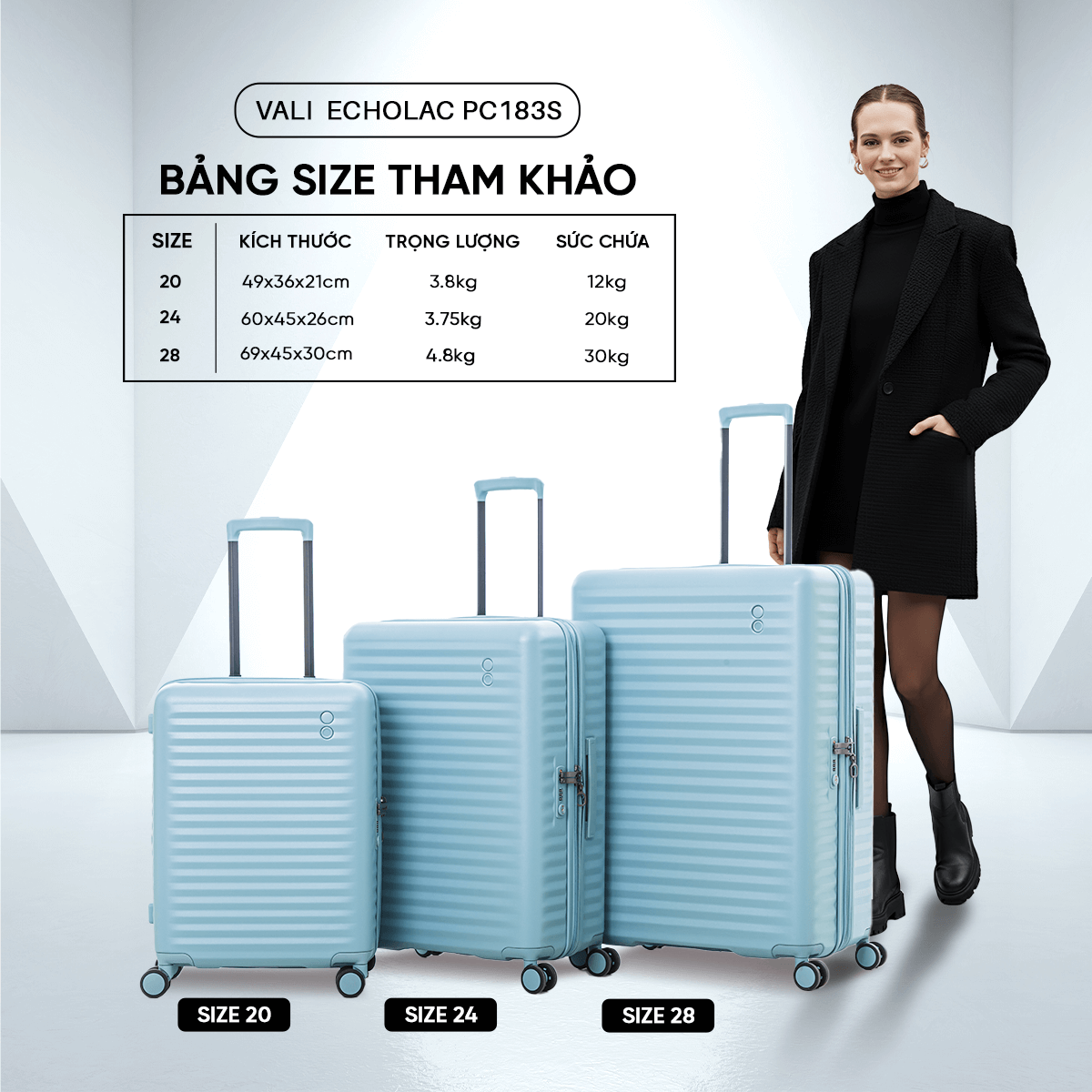 Thuộc bộ sưu tập nổi bật của Echolac, Celestra PC183S mang thiết kế sang trọng, hiện đại cùng gam màu pastel ngọt ngào, đem đến điểm nhấn đầy cuốn hút cho phong cách du lịch của bạn.