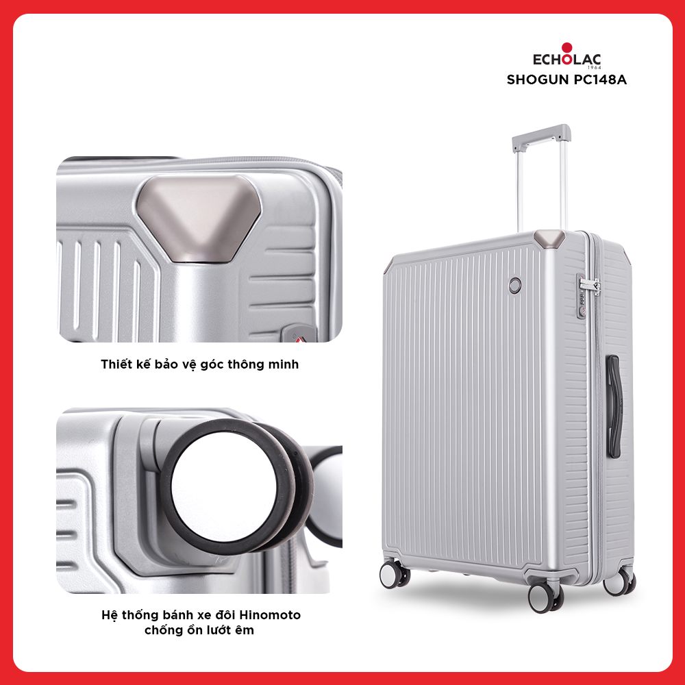 Thiết kế của Shogun PC148A mang phong cách mạnh mẽ, hiện đại nhưng vẫn giữ được nét tinh tế đặc trưng của Echolac. Với những chuyến đi công tác hoặc du lịch cuối năm, đặc biệt là các hành trình dài ngày, Echolac Shogun PC148A mang đến sự yên tâm nhờ khả năng bảo vệ hành lý toàn diện.