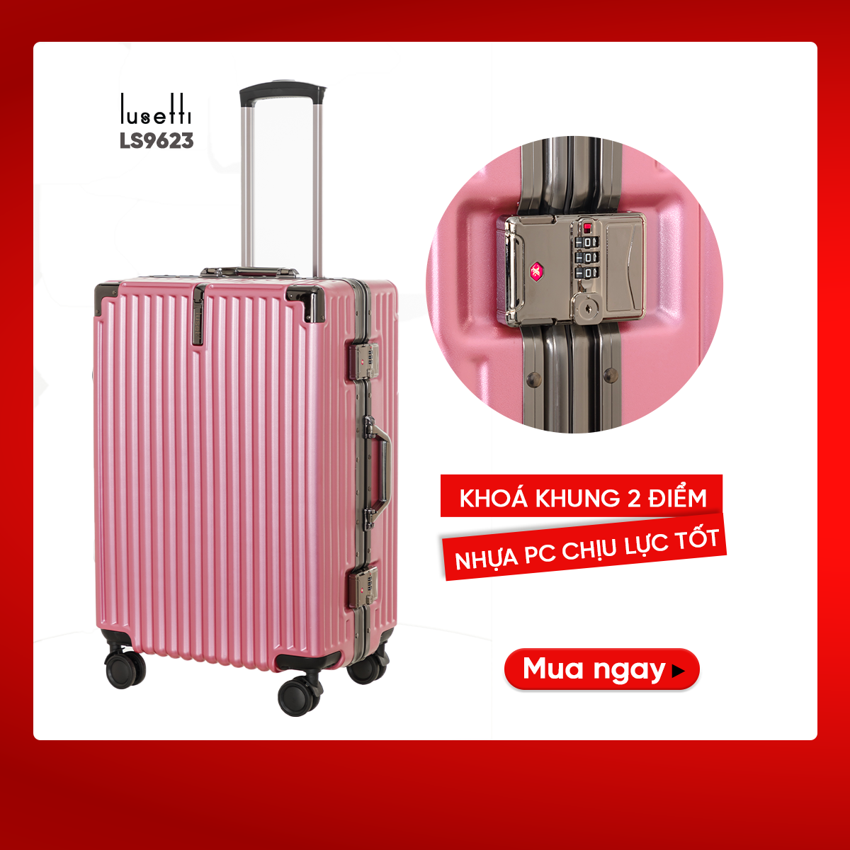 Lusetti LS9623 – Vali khóa sập kết hợp khung nhôm bền bỉ