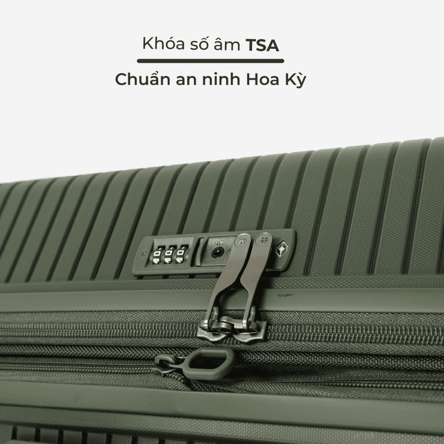 Trang bị khóa số TSA chìm tinh tế, đảm bảo an toàn hành lý khi di chuyển quốc tế, đồng thời giữ thiết kế bề mặt vali liền mạch, hiện đại. Đây là tính năng cần thiết với những ai thường xuyên đi công tác hoặc du lịch nước ngoài.