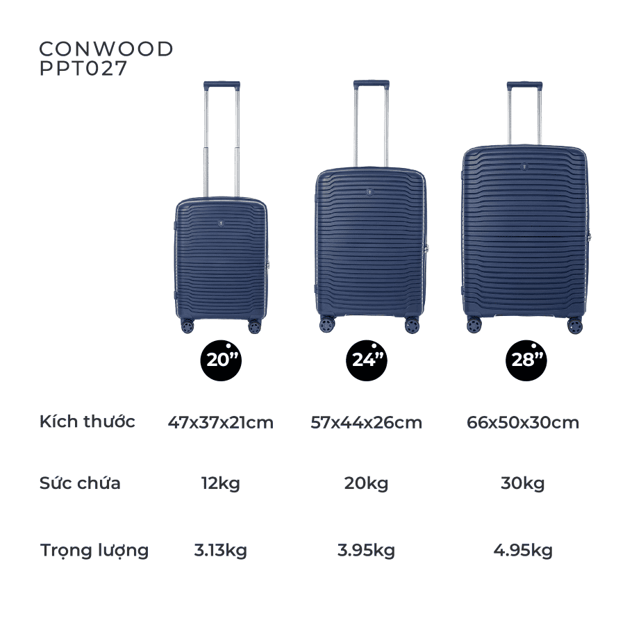 Conwood PPT027 là chiếc vali lý tưởng cho những ai ưu tiên tính an toàn, sức chứa linh hoạt và độ bền vượt trội trong mỗi hành trình. Với thiết kế chắc chắn, hiện đại cùng loạt tính năng hữu ích, mẫu vali này đáp ứng trọn vẹn nhu cầu di chuyển từ ngắn ngày đến dài ngày.