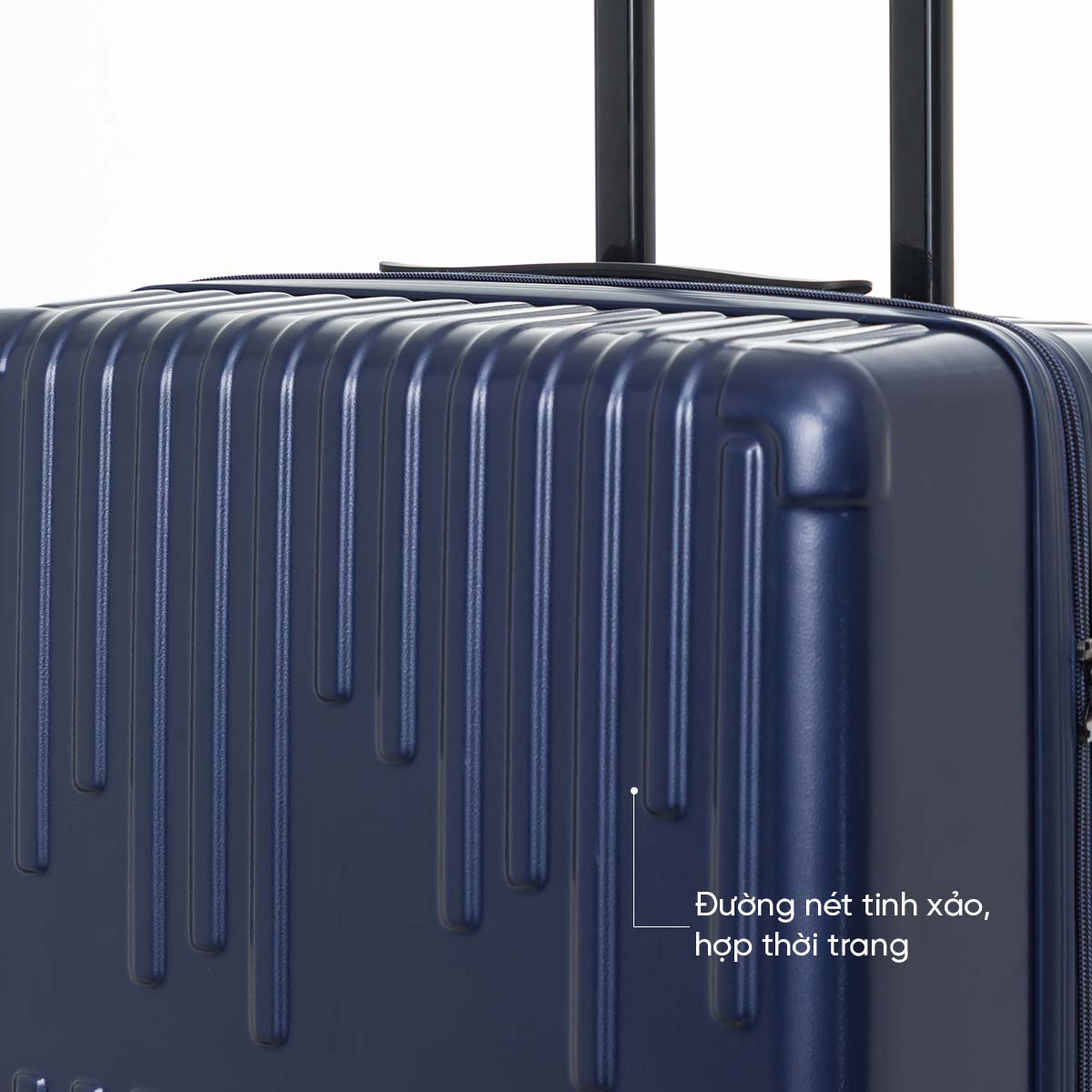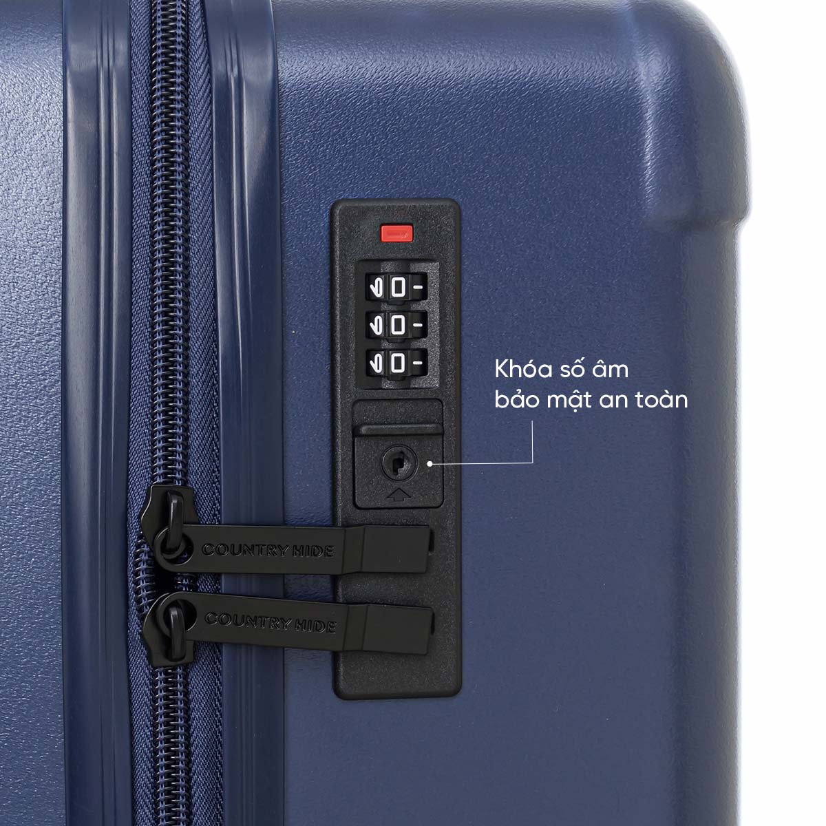 Sự tinh tế tiếp tục thể hiện qua chi tiết khóa số âm chìm vào thân vali, vừa tăng tính bảo mật khi di chuyển, vừa bảo vệ khóa khỏi va chạm không mong muốn.
