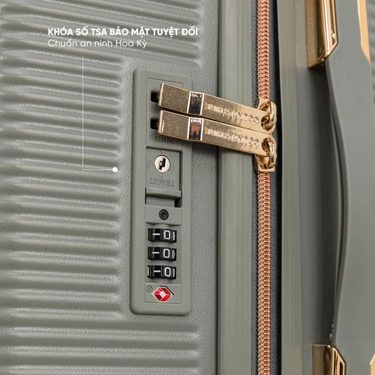 Trang bị khóa số TSA hiện đại, đạt chuẩn an ninh Hoa Kỳ, cho phép nhân viên hải quan mở kiểm tra hành lý khi cần mà không làm hỏng khóa, giúp bạn an tâm tuyệt đối khi di chuyển quốc tế.