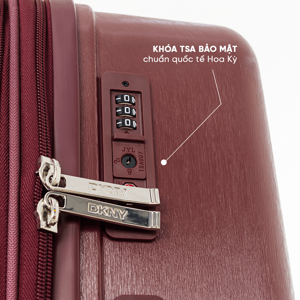 Được trang bị khóa TSA đạt chuẩn an ninh quốc tế Hoa Kỳ, vali DKNY bảo mật hành lý tuyệt đối, thích hợp cho cả du lịch nội địa lẫn quốc tế.