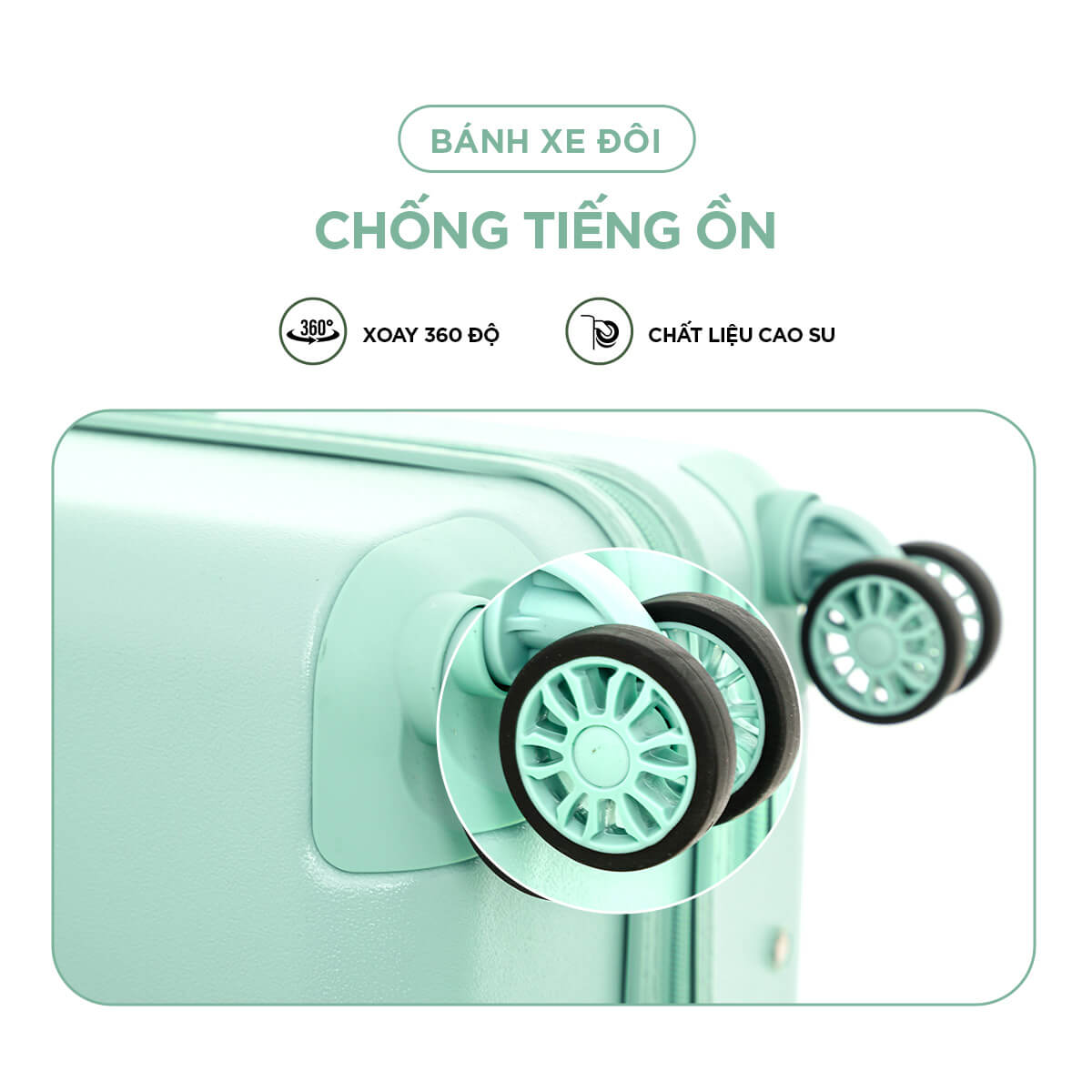 Vali cũng được trang bị 8 bánh xe xoay 360 độ, giúp di chuyển một cách linh hoạt và êm ái. Cùng cần kéo nhôm phân nấc thông minh, mang lại sự tiện lợi và dễ sử dụng cho người dùng.