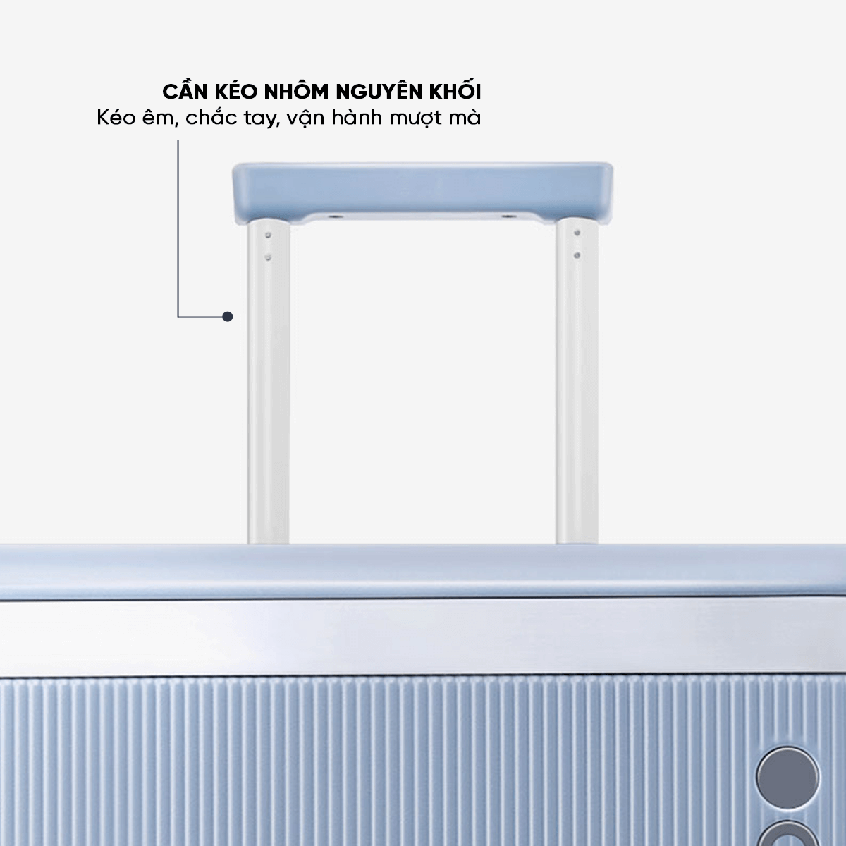 Hệ thống cần kéo của vali được thiết kế độc quyền bởi ECHOLAC, tích hợp hoàn toàn bằng nhôm cao cấp nguyên khối, mang lại sự chắc chắn, bền bỉ và cảm giác lướt êm tay khi di chuyển. Thiết kế tinh tế giúp tôn lên vẻ đẹp tổng thể của vali, đồng thời tối ưu trải nghiệm sử dụng trong từng chuyển động.