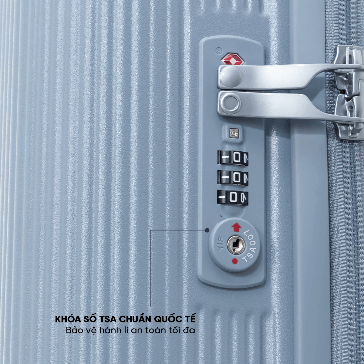 Khóa số chuẩn TSA, đáp ứng tiêu chuẩn kiểm tra an ninh tại hầu hết các sân bay quốc tế. Thiết kế tối ưu giúp bảo vệ hành lý an toàn tuyệt đối, đồng thời cho phép nhân viên an ninh kiểm tra khi cần mà không làm hư hỏng khóa hay vali.