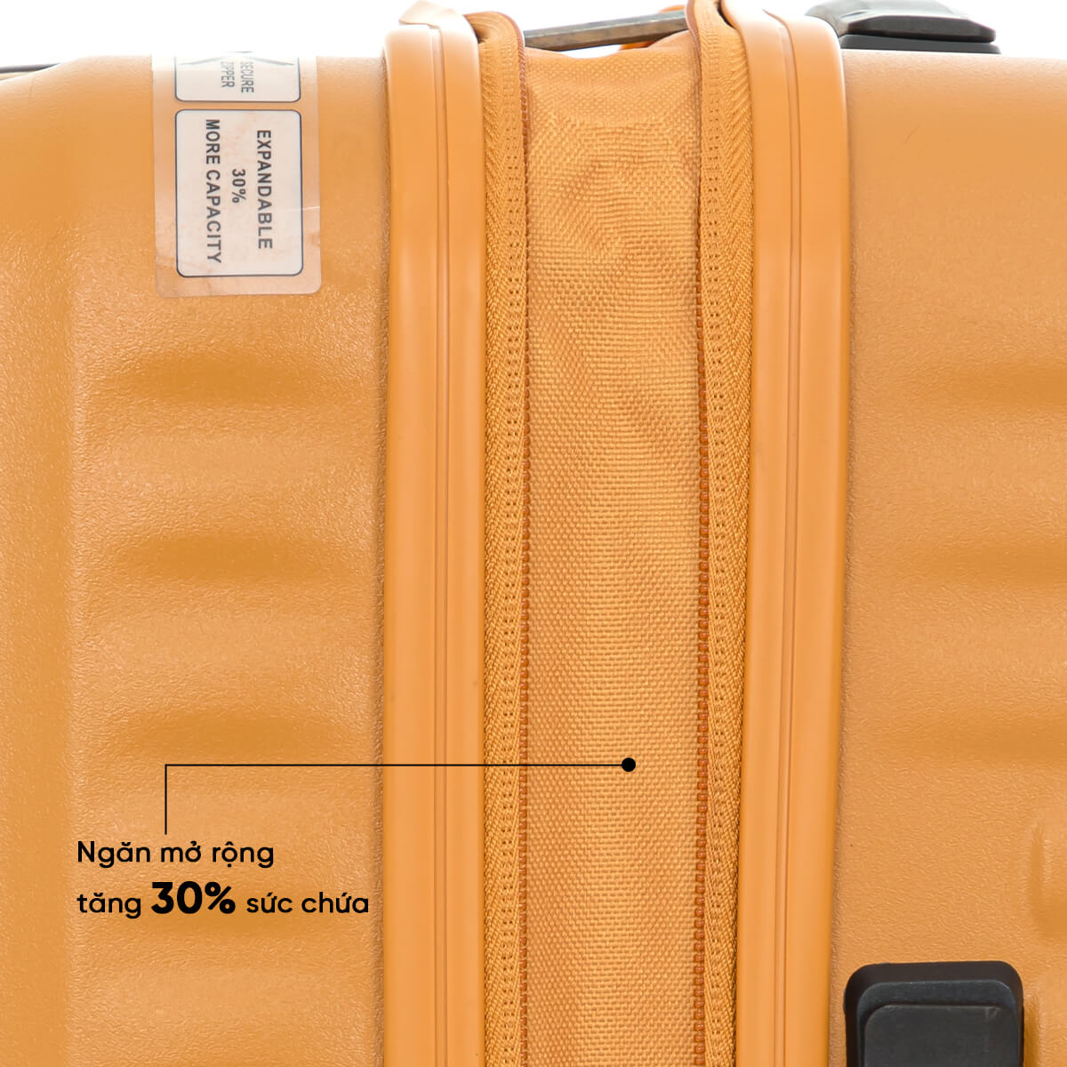 Với thiết kế ngăn mở rộng thông minh, bạn có thể tăng thêm 30% dung tích vali khi cần thiết, đáp ứng nhu cầu mang theo nhiều đồ đạc hơn trong những chuyến đi dài ngày.
