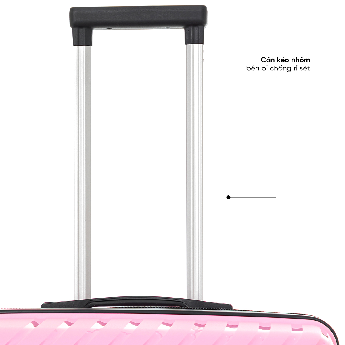 Cần kéo của vali được làm bằng chất liệu nhôm cao cấp được thiết kế phân nấc đa điểm, giúp dễ dàng điều chỉnh chiều cao và thuận tiện khi kéo vali theo mọi hướng, chống rỉ sét sau thời gian dài sử dụng.