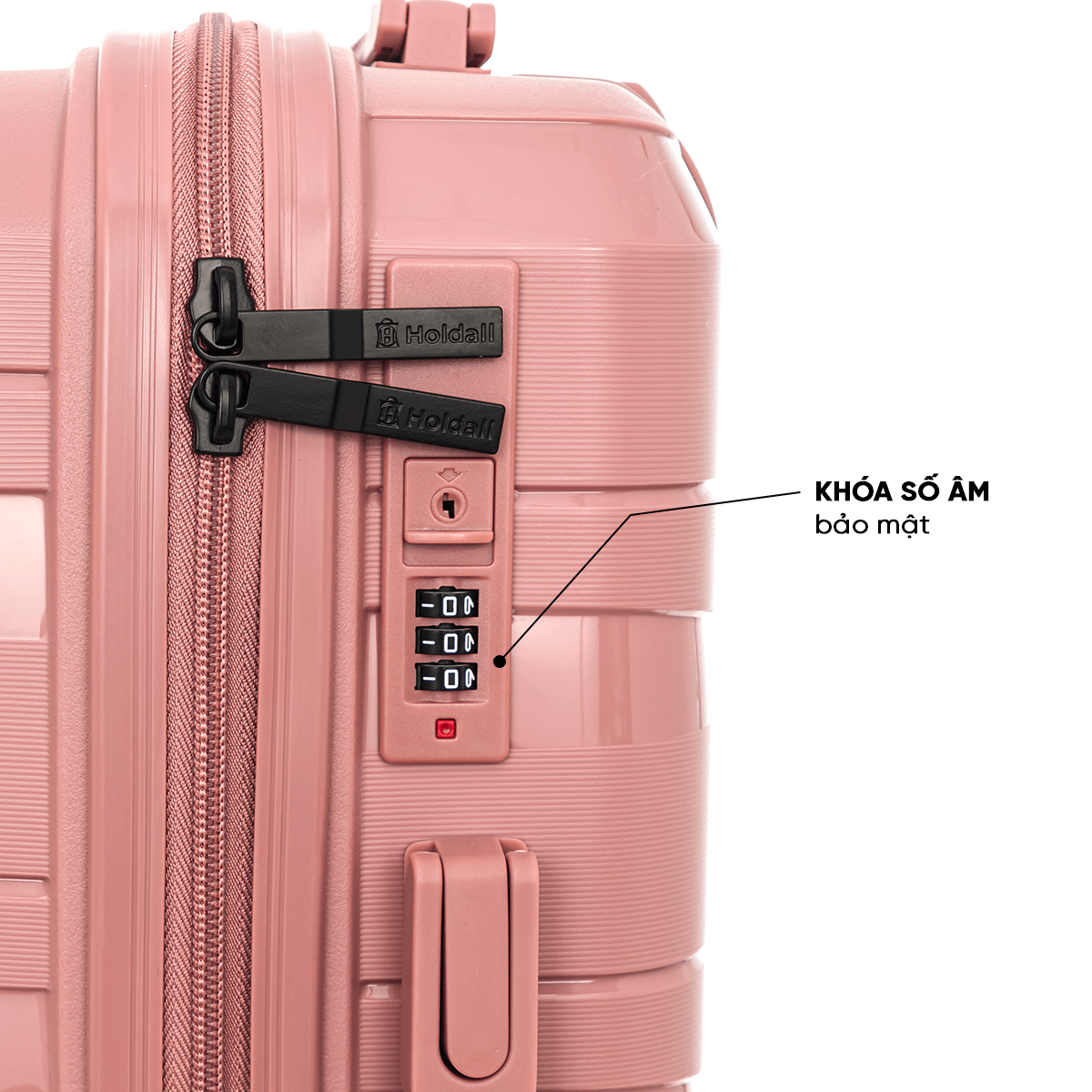 Vali sử dụng chất liệu PP đàn hồi cao, hạn chế bể vỡ vượt trội và chịu lực va đập tốt khi di chuyển. Đặc tính nhẹ, bền và phù hợp cho cả hành trình ngắn hay dài ngày.
