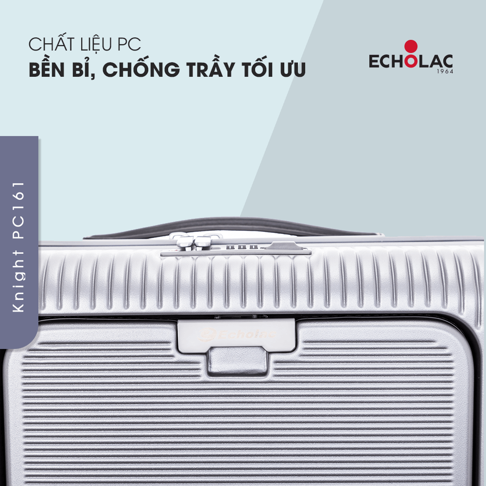 Vali Echolac Knight PC161 có thiết kế vỏ ngoài EchoLite ™ Polycarbonate với nguyên liệu từ CovestroMakrolon®, có độ bền chắc và khả năng chống vali đập tối ưu. Chất liệu này còn giúp sản phẩm tránh tình trạng bị biến dạng khi nhiệt độ môi trường thay đổi, chịu nhiệt chịu lực tốt.