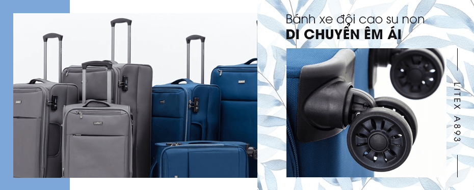Chiếc vali kéo vải Litex A893 trang bị 8 bánh xe được bọc cao su non nguyên khối giúp kéo di chuyển êm ái, linh hoạt với khả năng xoay 360 độ. Vỏ bánh xe làm bằng cao su thiên nhiên đúc nguyên khối hạn chế ma sát với mặt đường, không gây tiếng ồn khi kéo vali trên sàn gỗ, bao quanh khung nhựa lõi cốt thép chắc chắn, chịu tải trọng lớn hơn nhiều lần so với trọng lượng sản phẩm.