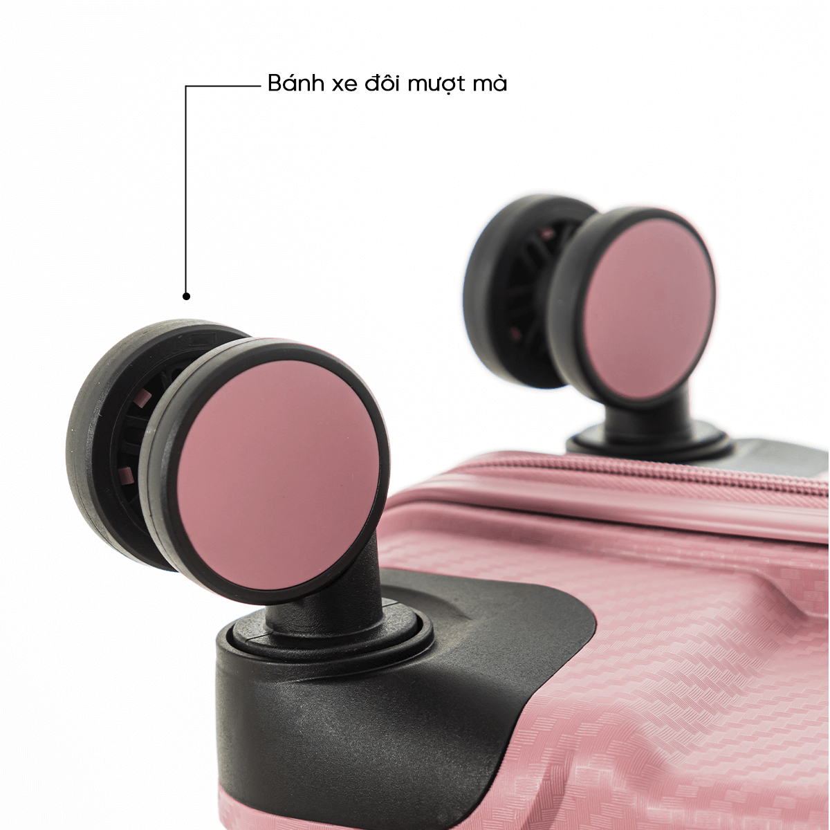Hệ thống bánh xe đôi xoay 360 độ là điểm cộng về sự tiện lợi của LS1801PP. Từng chuyển động đều mượt mà và linh hoạt, giúp vali dễ dàng lướt trên nhiều mặt sàn khác nhau mà không gây tiếng ồn khó chịu.