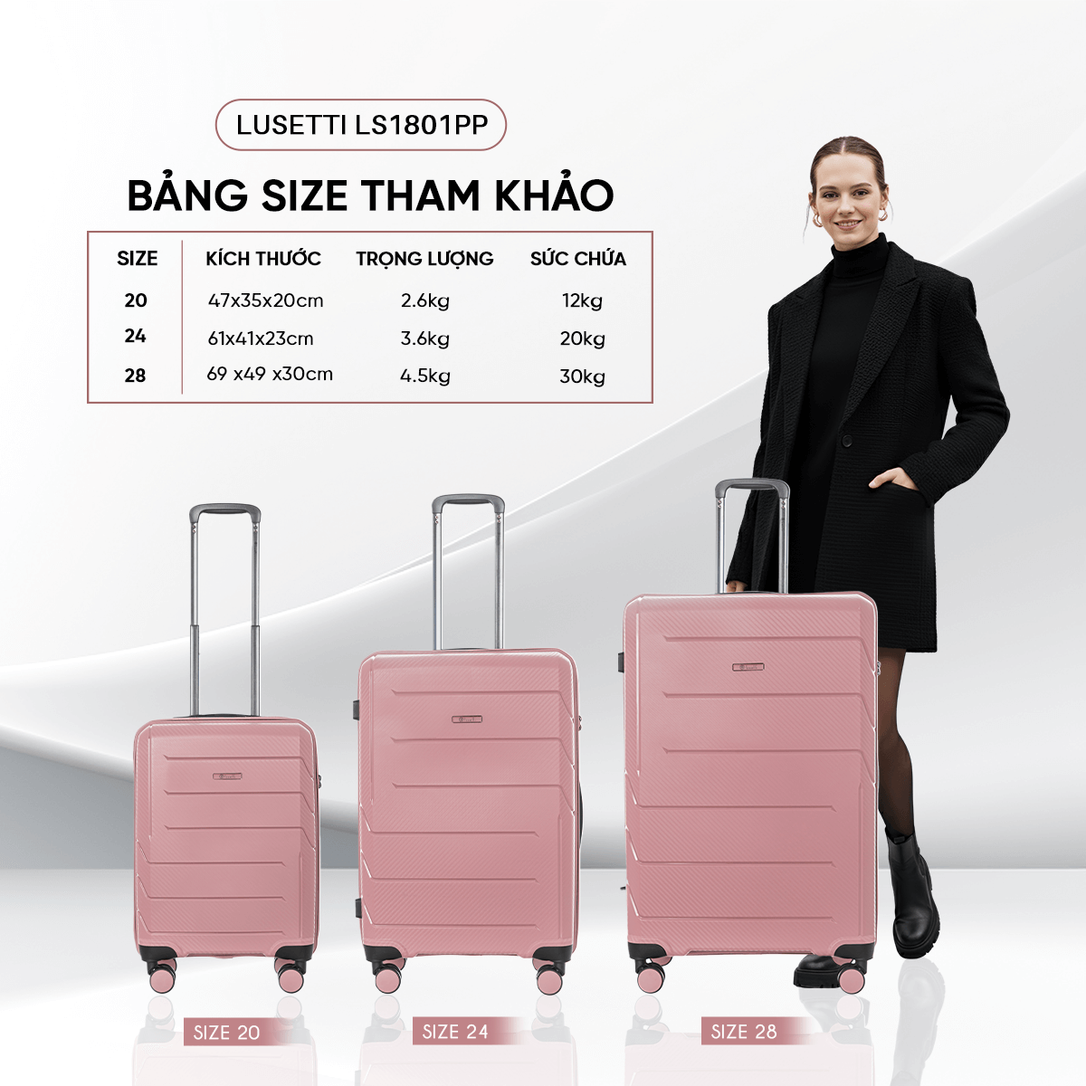 Lusetti LS1801PP là lựa chọn lý tưởng cho những chuyến đi cần sự an tâm tuyệt đối. Chiếc vali được cấu tạo từ nhựa PP nguyên sinh, nổi tiếng với độ đàn hồi vượt trội, khả năng chống va đập – chống vỡ cực tốt, thoải mái di chuyển ở mọi hành trình gần xa.