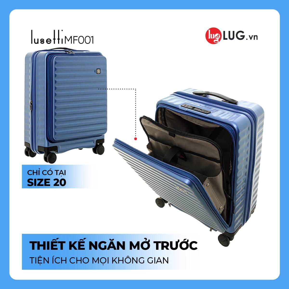 Là bản dupe hoàn hảo của dòng vali cao cấp top 1 Nhật Bản, Lusetti MF001 đáp ứng mọi tiêu chuẩn của một chiếc vali đẳng cấp quốc tế với mức giá dễ chịu. Thiết kế ngăn mở trước đặc biệt của vali Lusetti MF001 là một giải pháp thông minh giúp tiết kiệm không gian và tăng tính tiện dụng cho người dùng.