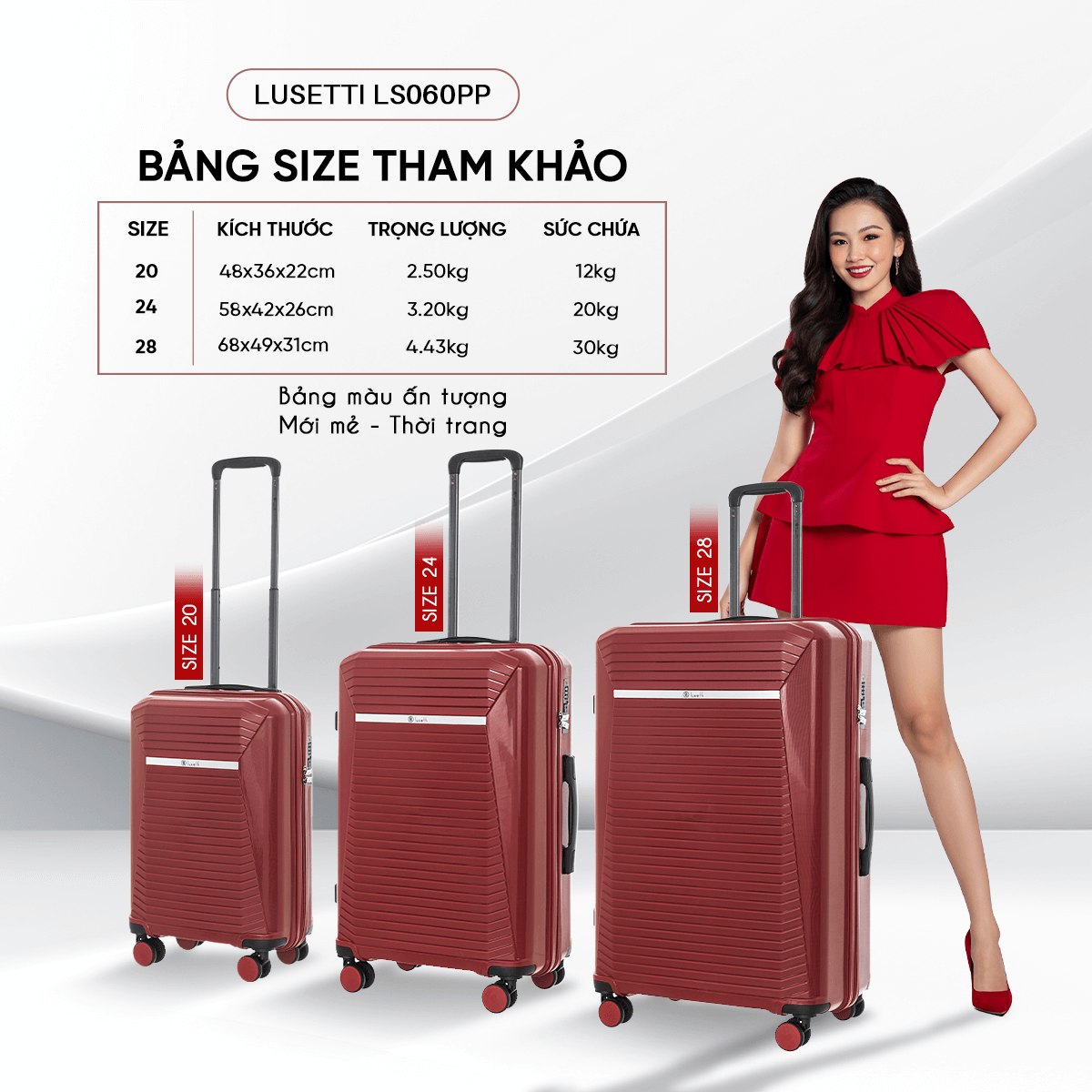 Lusetti LS060PP là mẫu vali dành cho những ai muốn vừa giữ được phong thái hiện đại, vừa yên tâm về độ bền trong từng chuyến đi. Từng chi tiết được tối ưu để mang đến trải nghiệm di chuyển mượt mà và bảo vệ hành lý tối đa.