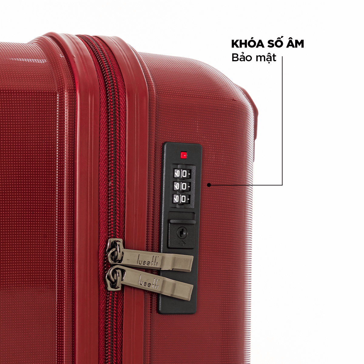 Thiết kế khóa số âm giúp hạn chế vướng víu và tạo cảm giác liền mạch cho bề mặt vali. Cơ chế khóa chắc chắn, thao tác nhanh, giúp người dùng yên tâm hơn trong những chuyến đi dài.