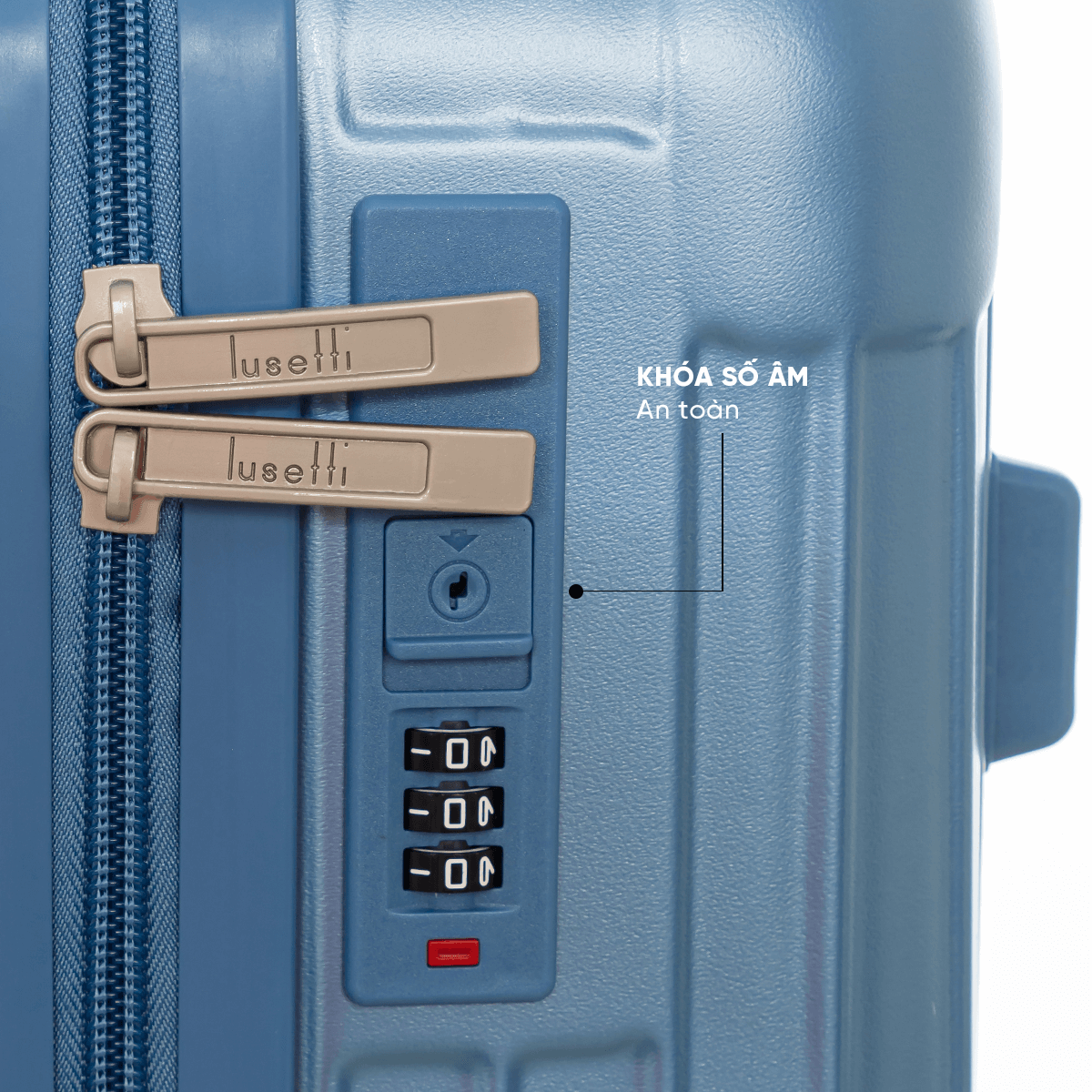 Hệ thống khóa số âm hiện đại, vừa đảm bảo an toàn cho hành lý, vừa mang lại sự tinh tế trong thiết kế, chống tình trạng kẹt hay vướng khi di chuyển.