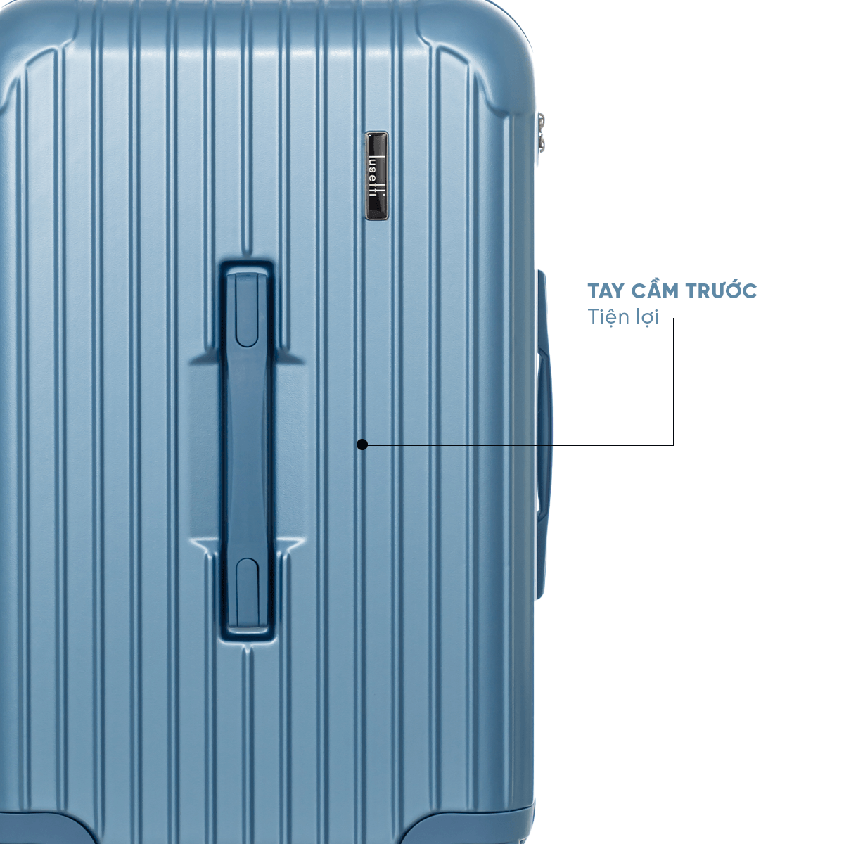 Ngoài tay kéo nhôm chắc chắn, vali còn được trang bị tay cầm ở mặt trước. Thiết kế này giúp bạn dễ dàng nâng, nhấc hoặc đặt vali lên cốp xe, giá đỡ hay băng chuyền sân bay một cách thuận tiện và thoải mái hơn. Đây là chi tiết nhỏ nhưng cực kỳ hữu ích cho những ai thường xuyên di chuyển.