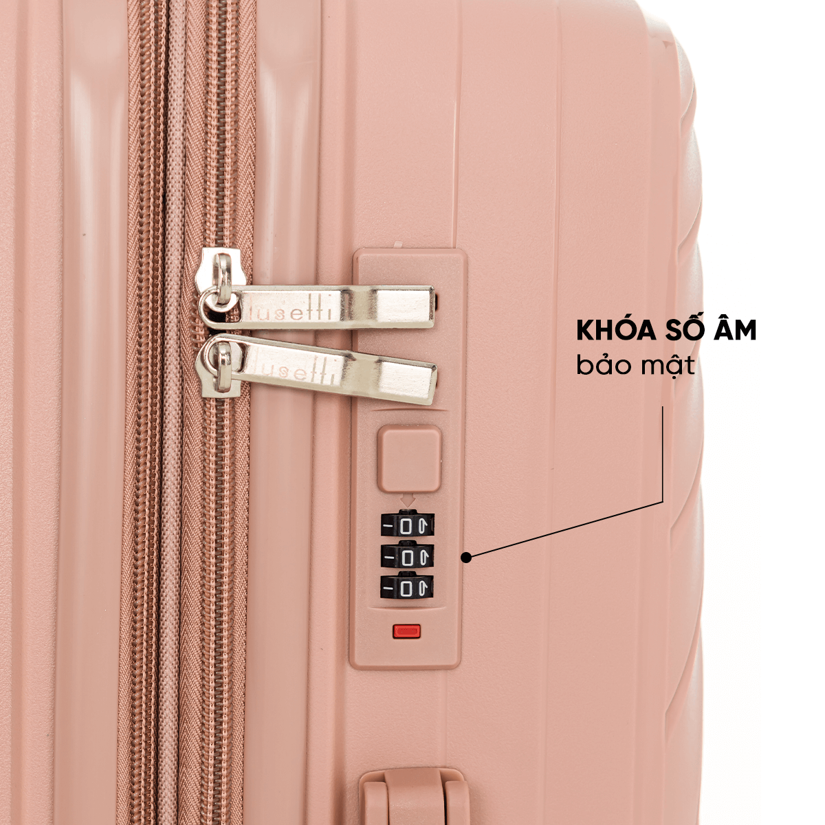 Thiết kế khóa số âm được đặt gọn vào thân vali, vừa giúp tăng tính thẩm mỹ vừa hạn chế va chạm trong quá trình vận chuyển. Hệ thống khóa đạt tiêu chuẩn an toàn cao, giúp bạn yên tâm tuyệt đối về hành lý của mình trong mọi chuyến đi.