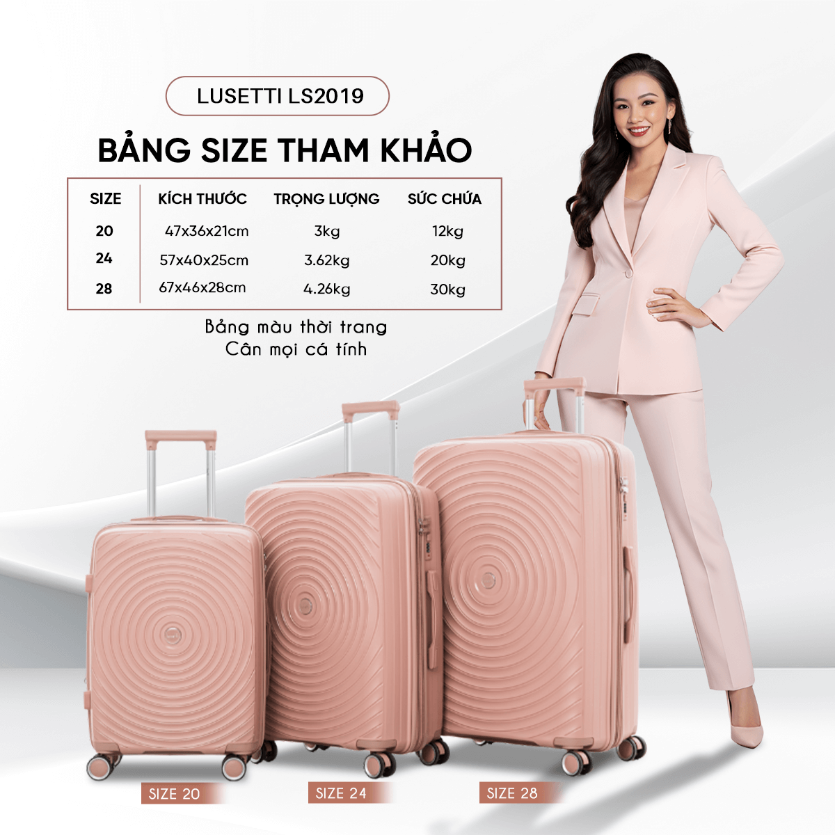 Mang phong cách hiện đại và sự bền bỉ vượt trội, Lusetti LS2019PP là lựa chọn lý tưởng cho những ai yêu du lịch và đề cao trải nghiệm trọn vẹn.