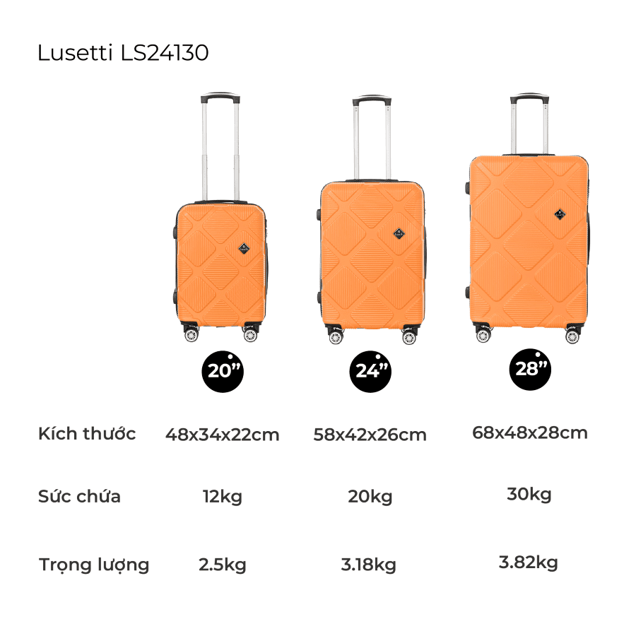 Lusetti LS24130 là tân binh của thương hiệu Lusetti - thương hiệu nổi tiếng với những chiếc vali bền bỉ. Lusetti LS24130 là mẫu vali lý tưởng dành cho những ai đang tìm kiếm sự kết hợp giữa thiết kế hiện đại, tính linh hoạt cao và trọng lượng tối ưu. Phù hợp cho cả chuyến công tác ngắn ngày lẫn du lịch dài ngày, mẫu vali này mang đến trải nghiệm sử dụng dễ dàng, tiện lợi và bền bỉ theo thời gian.