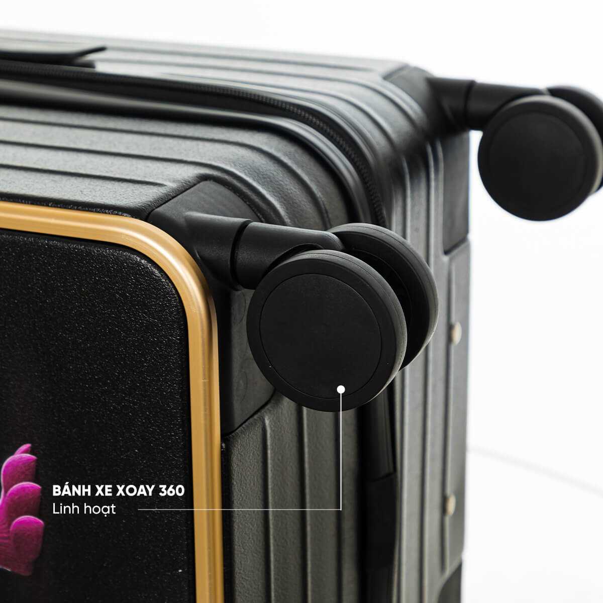 Trang bị 4 bánh xe xoay đa hướng, vali di chuyển nhẹ nhàng, giảm rung lắc và không gây tiếng ồn. Dù di chuyển trong sân bay hay trên mặt đường gồ ghề, vali vẫn đảm bảo độ cân bằng và trơn tru.