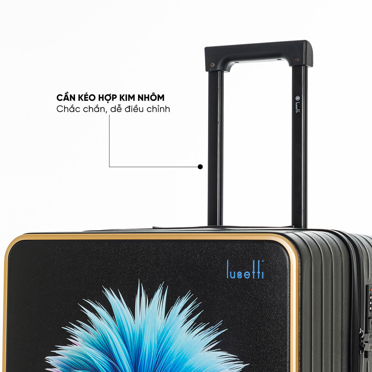Thiết kế tay kéo làm từ hợp kim nhôm cao cấp, có thể tùy chỉnh chiều cao linh hoạt theo vóc dáng người dùng. Tay cầm nhẹ, thao tác kéo đẩy mượt mà và ổn định trên mọi địa hình.