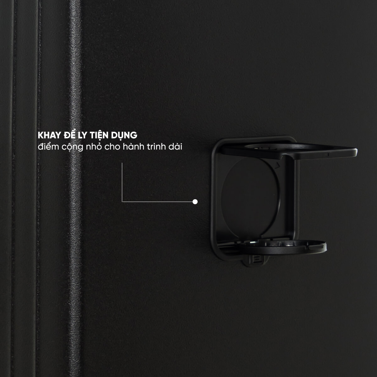 Một chi tiết thông minh được tích hợp ngay phần mặt sau của vali – khay để ly gập mở tiện lợi, giúp bạn đặt cốc cà phê, nước hoặc chai nước suối khi chờ ở sân bay, mà không lo đổ hay phải cầm tay bất tiện. Tính năng này mang đến sự tiện nghi hiện đại, đặc biệt phù hợp với những ai thường xuyên di chuyển.
