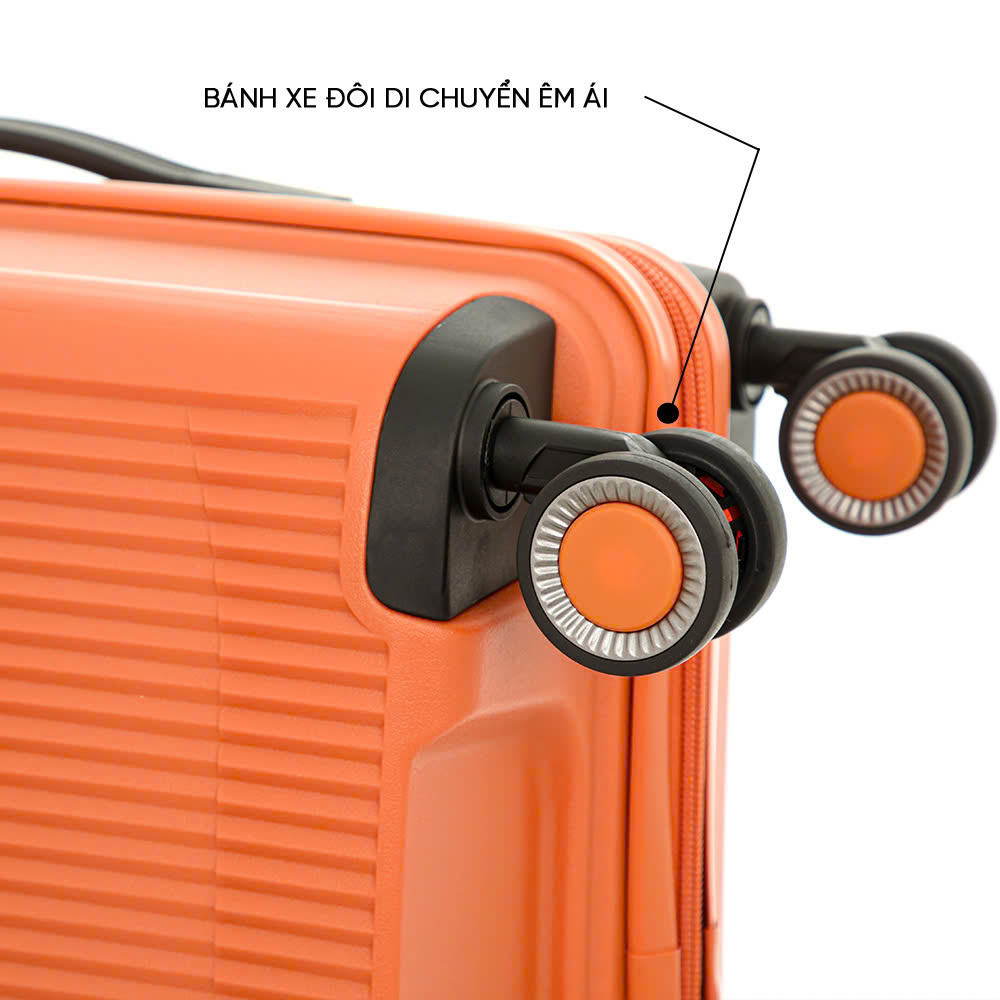 Hệ thống bánh xe đôi được thiết kế đặc biệt, giúp vali di chuyển êm ái, linh hoạt trên mọi địa hình. Bánh xe được làm từ chất liệu cao cấp, bền bỉ và có khả năng xoay 360 độ.