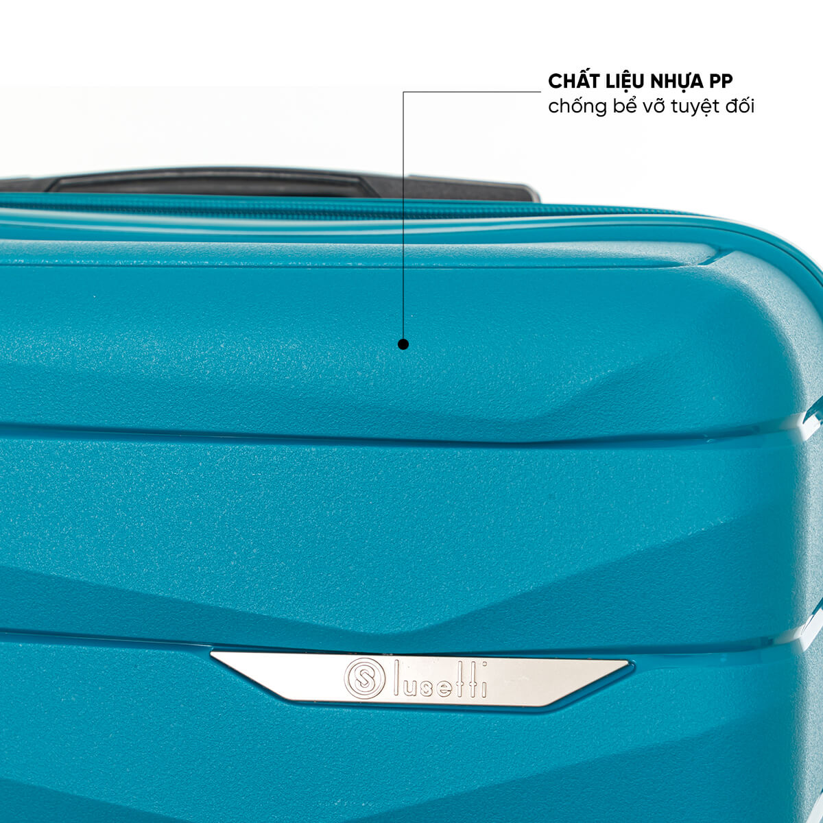 Lusetti MP027 được làm từ chất liệu nhựa PP cao cấp, nổi bật với khả năng chịu lực tốt, đàn hồi cao, giúp vali chống lại các va đập mạnh trong suốt hành trình. Với độ bền vượt trội, đây là sự lựa chọn hoàn hảo cho những chuyến đi dài ngày hoặc di chuyển thường xuyên.
