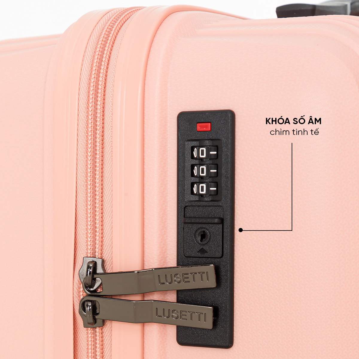 Thiết kế khóa số chìm giúp tăng tính thẩm mỹ cho vali, đồng thời giữ bề mặt phẳng đẹp và dễ dàng xếp gọn mà không sợ bị va đập hư khóa.