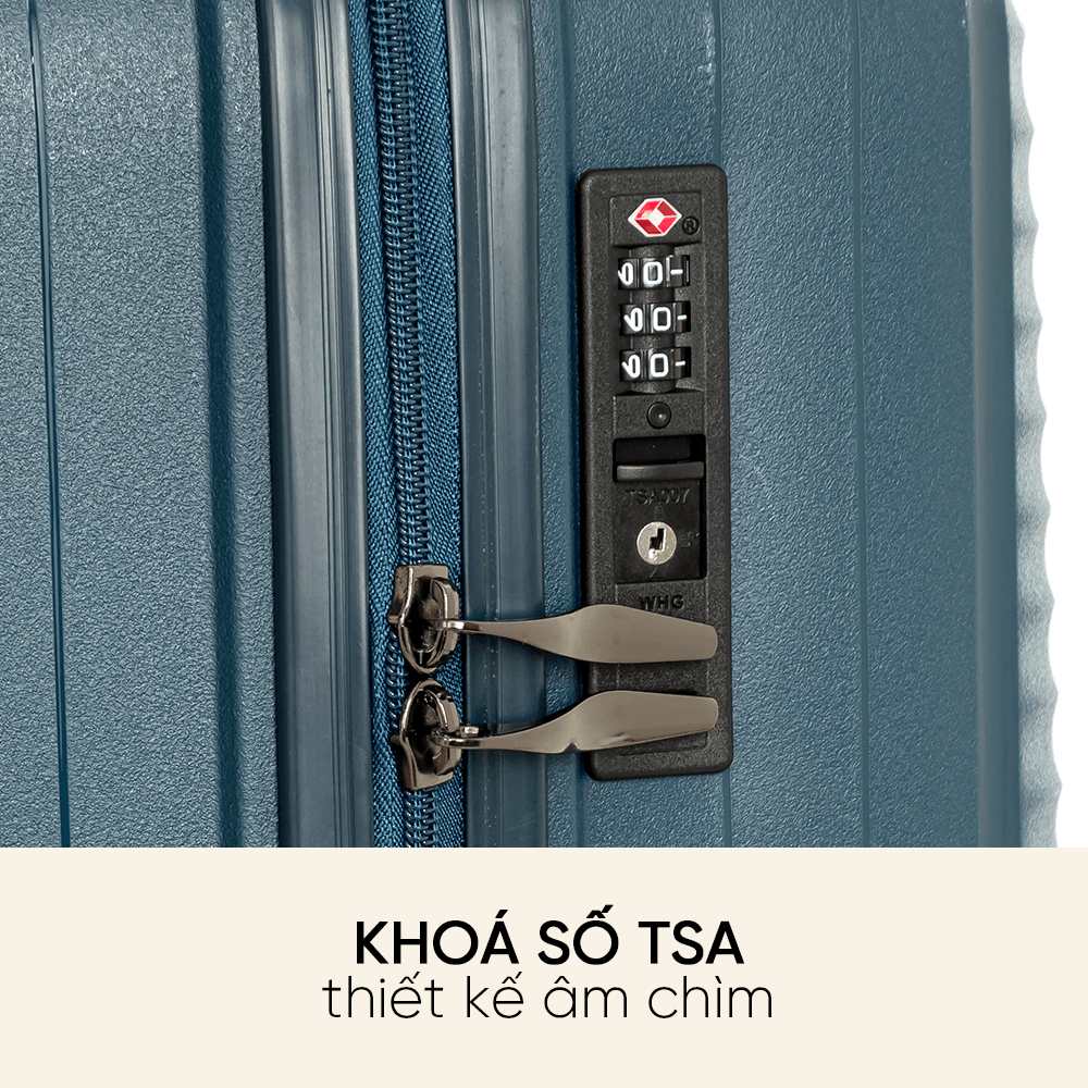 Khóa số âm TSA chuẩn an ninh Hoa Kỳ giúp bạn yên tâm khi đi du lịch nước ngoài. Khóa số này được chấp thuận bởi Cơ quan An ninh Vận tải Hoa Kỳ (TSA), cho phép nhân viên an ninh mở vali của bạn để kiểm tra mà không cần phá khóa.
