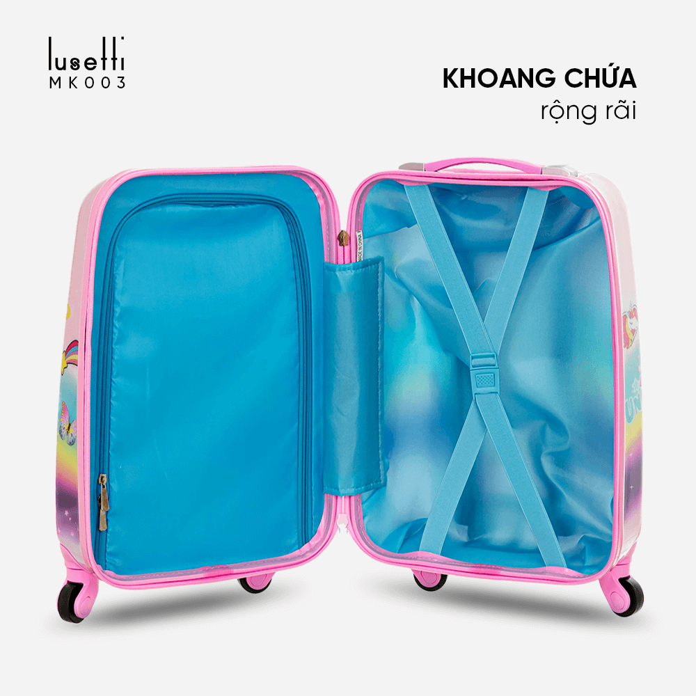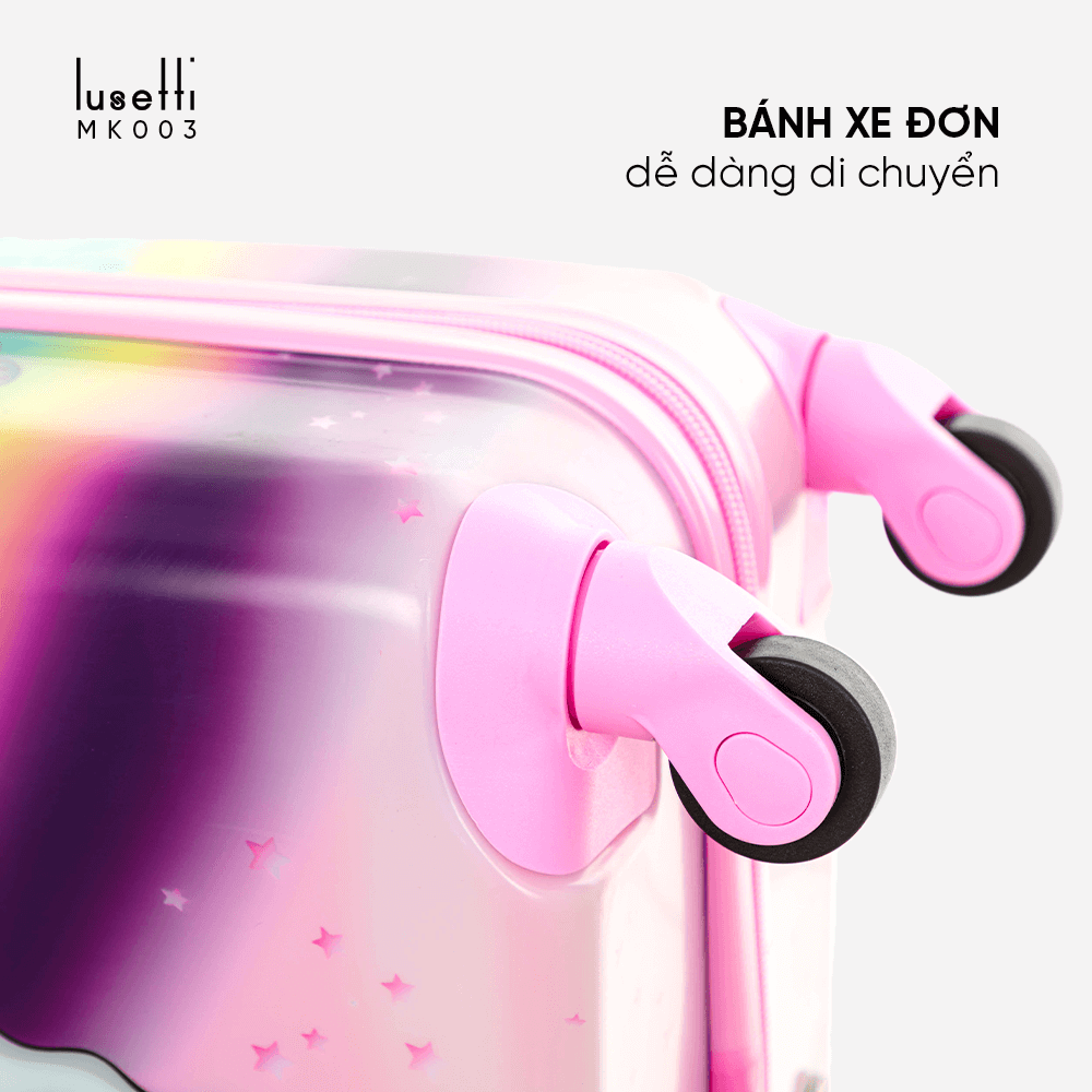 Nằm trong bộ sưu tập vali kid mới nhất của nhà Lusetti - Lusetti MK003. Với vẻ ngoài thời trang, họa tiết bắt mắt cùng vô vàn ưu điểm MK003 chắc chắn sẽ là một người bạn đồng hành tuyệt vời cho bé trong mỗi chuyến đi.