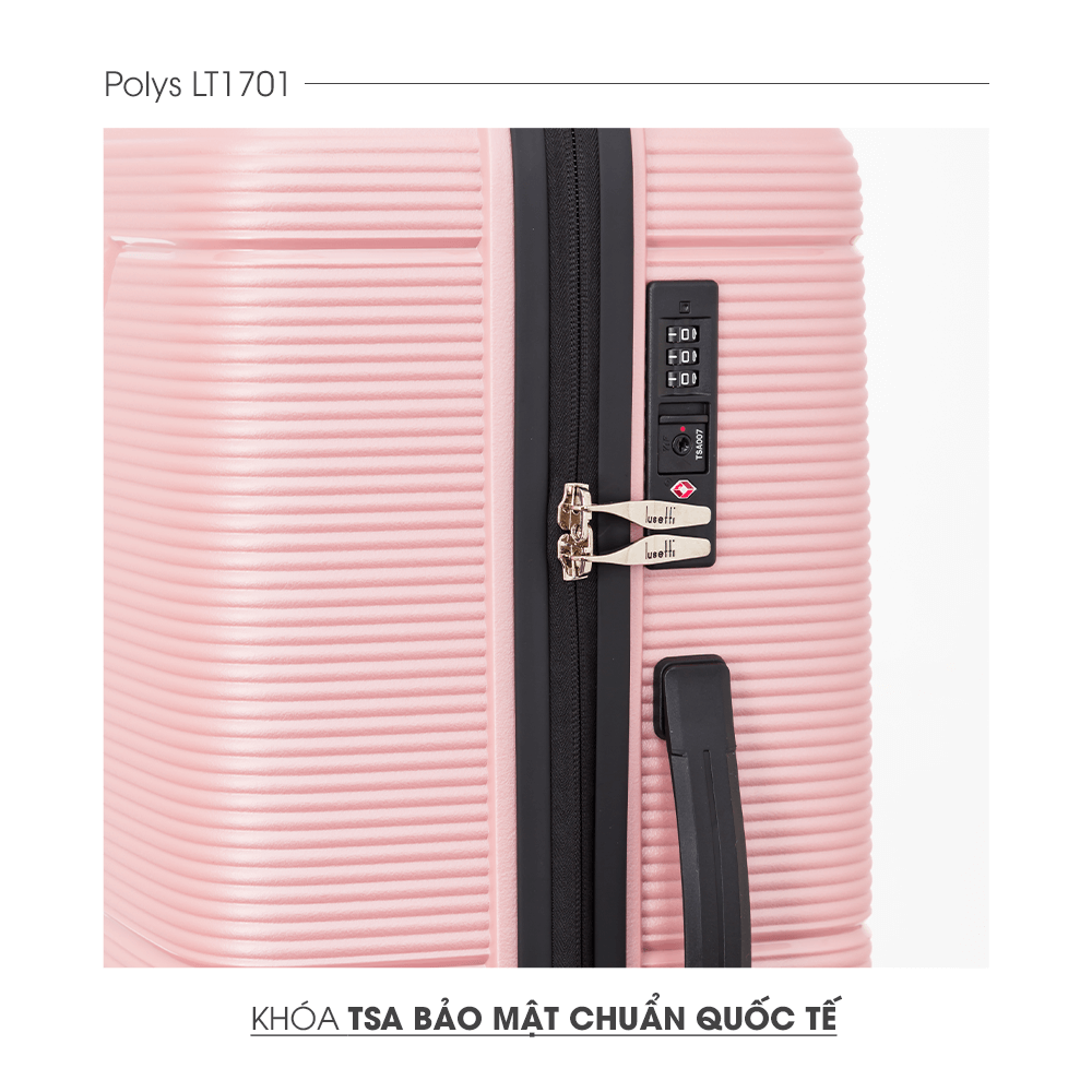 Vali Lusetti Polys LT1701 được hoàn thiện từ nhựa Propylene với đặc tính chịu lực cực tốt, tạo nên tổng thể cứng cáp và chắc chắn. Thiết kế các rãnh sọc ngang trên bề mặt vali không những tăng tính thẩm mỹ mà còn chống trầy tối ưu cho sản phẩm.