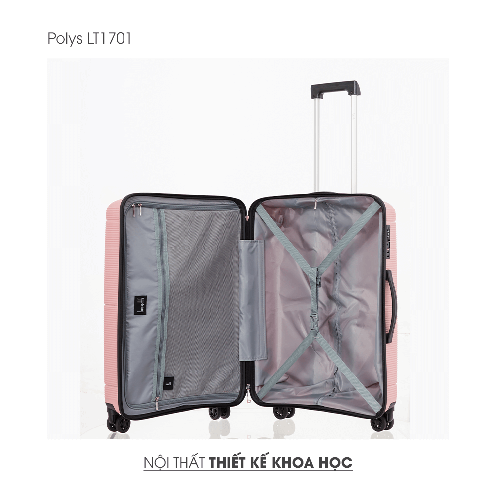 Ngăn chứa lớn với 2 khoang chứa rộng là điểm cộng đáng sở hữu của Polys LT1701. Một ngăn chính lớn với dây ràng có thể điều chỉnh độ dài và một ngăn chính tích hợp ngăn kéo phụ sẽ giúp bạn gói trọn hành lý của mọi chuyến đi.