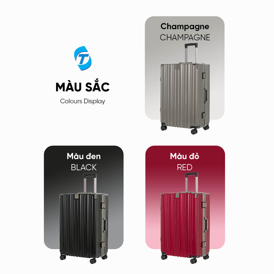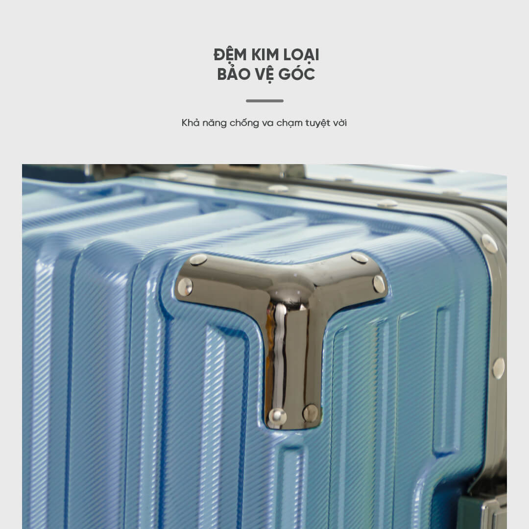 Các góc đọc bọc kim loại để hạn chế va chạm tối đa, giữ cho chiếc hành lý được bền bỉ với thời gian.