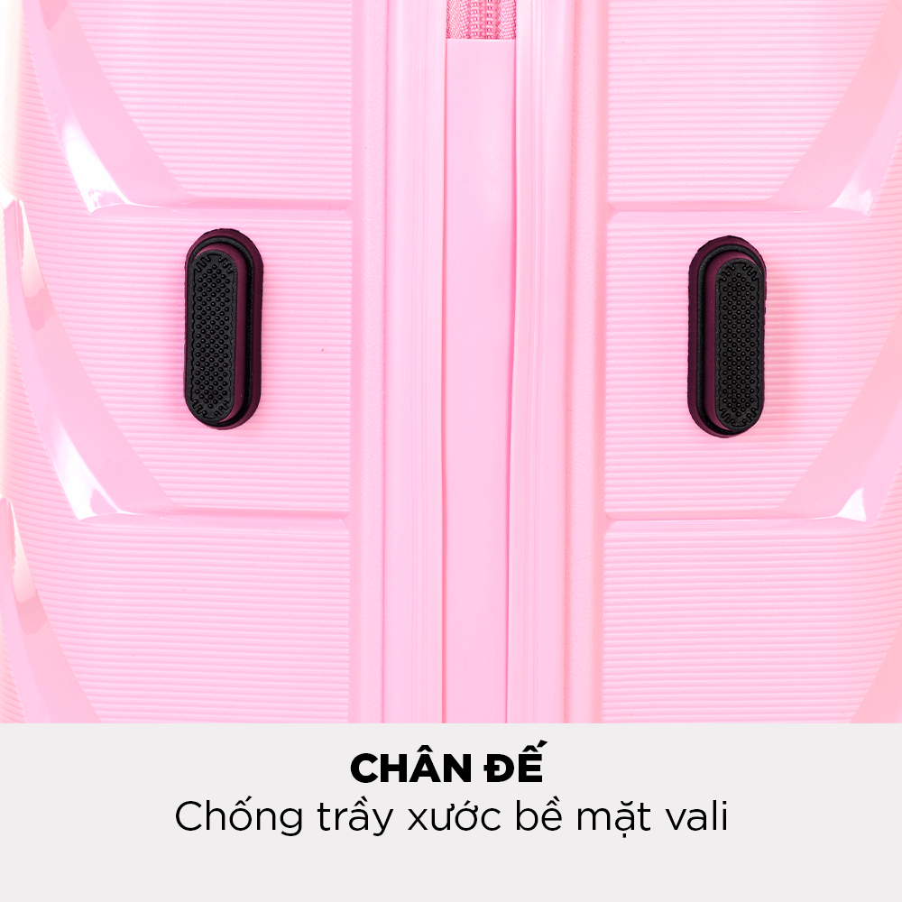 Đội ngũ thiết kế cực kỳ hiểu tâm lý chung của khách hàng khi di chuyển đó là sợ trầy xước vali khi ký gửi hành lý ở sân bay hoặc xe khách. Giờ đây bạn có thể đập tan nỗi lo âu đó nhờ vào 4 chân đế nhựa cứng cáp bảo vệ tối đa sự tiếp xúc giữa vali các bề mặt khác.
