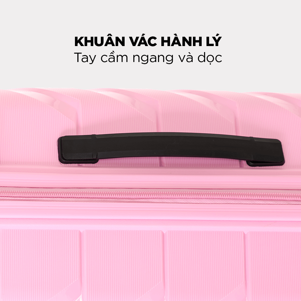 Giờ đây chuyện khuân vác hành lý không còn là vấn đề khi vali được trang bị thêm cả tay cầm ngang và tay cầm dọc bằng nhựa cực cứng cáp và dễ dàng thao tác. Nhà sản xuất luôn luôn khuyên mọi người nên sử dụng cả 2 tay cầm cùng lúc khi khuân vác hành lý để bảo vệ tuổi thọ vali