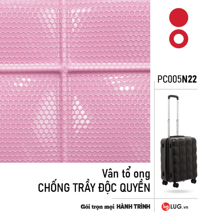 Mẫu Vali Square PC005N22 có thiết kế lạ mắt cùng với vân tổ ong độc quyền từ thương hiệu Echolac. Nhìn từ xa bề mặt vali nhẫn bóng nhưng khi lại gần và sờ tay vào mới cảm nhận được sự khác biệt.