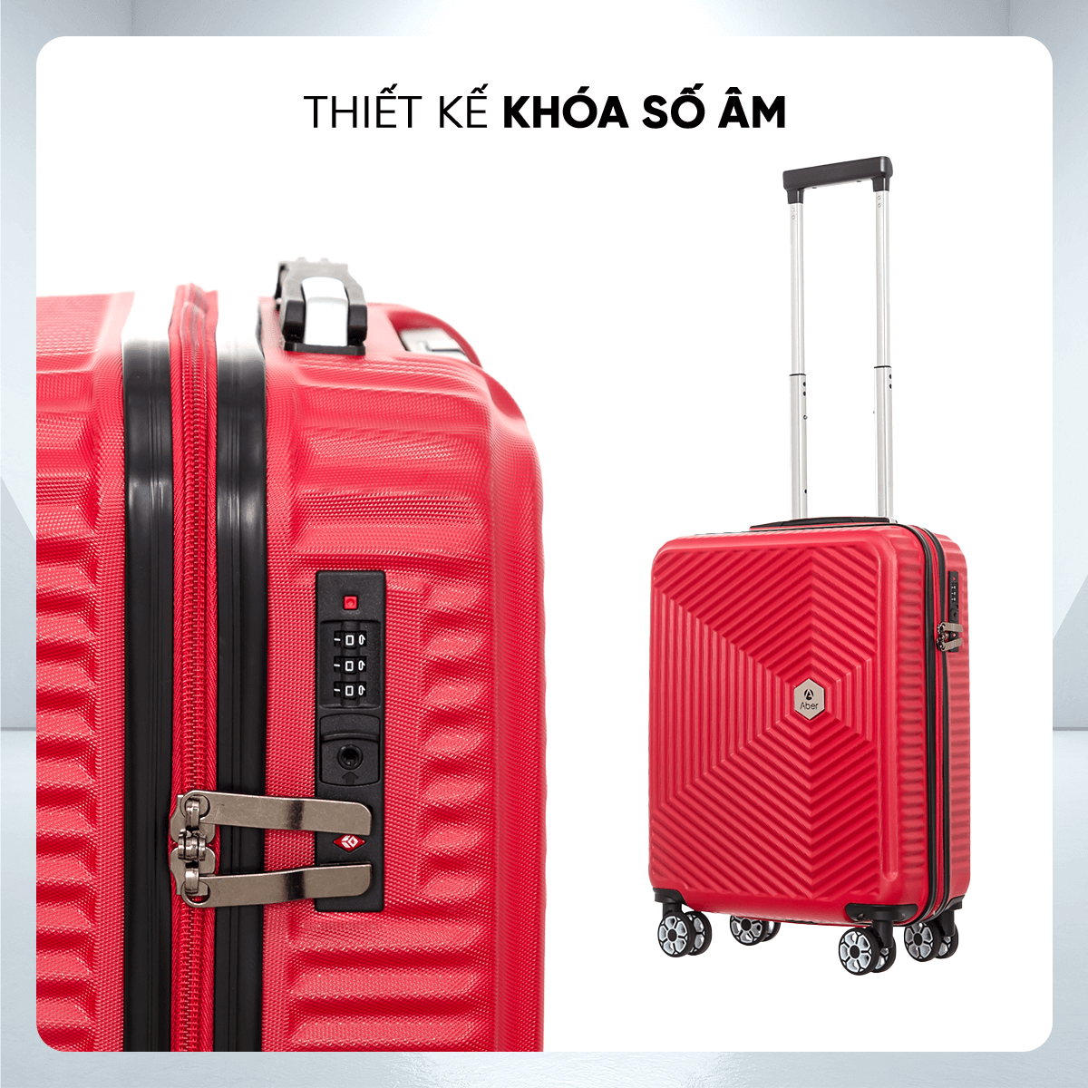 Hệ thống 8 bánh xe đôi lướt êm trên mọi địa hình. Liên hệ ngay với LUG để nhận ngay giá ưu đãi nhất cho dòng sản phẩm vali Aber này nhé!