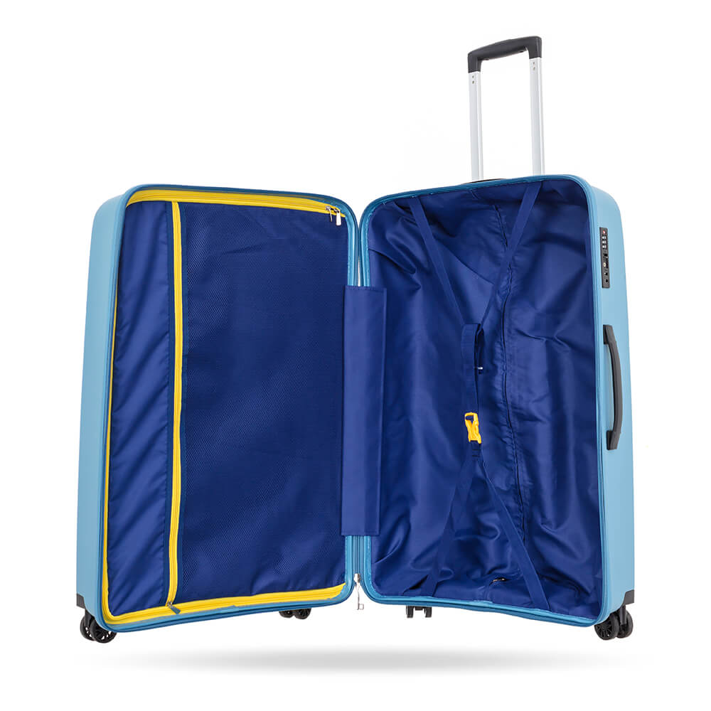 Sản phẩm sở hữu 2 ngăn chính rộng rãi và 1 ngăn phụ dạng giúp bạn đựng các đồ vật nhỏ, mỹ phẩm rất tiện lợi. Bên cạnh đó nội thất bên trong của sản phẩm được may bởi lớp vải PE cao cấp rất dày dặn và mềm mại, với ưu điểm về khả năng chống thấm và thoáng khí giúp bạn yên tâm hơn mỗi khi chứa hành lý bị ẩm ướt sẽ không để lại mùi ẩm mốc khó chịu và rất dễ dàng hơn trong khâu vệ sinh